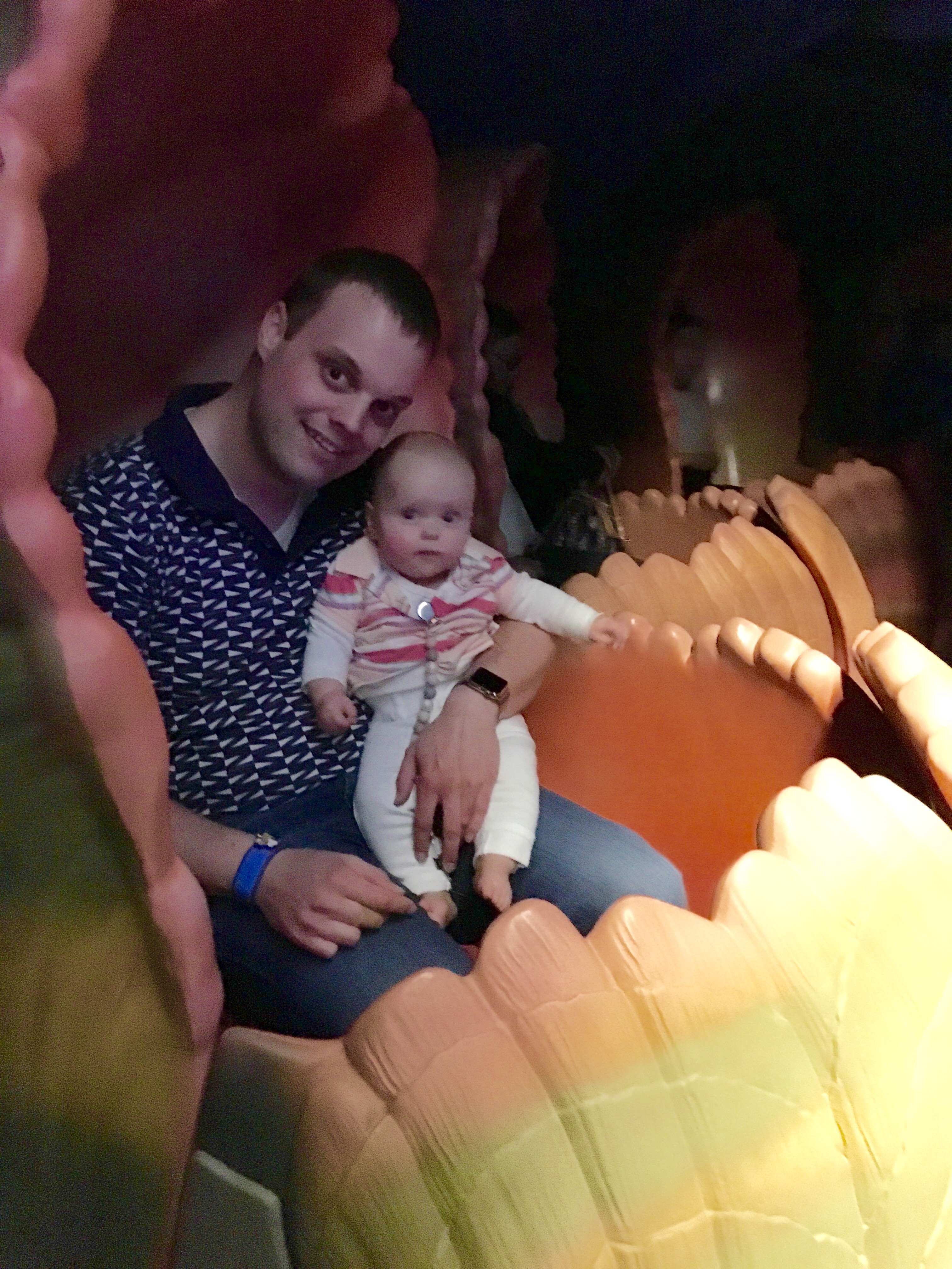 But while we got these we also saw that there was a really short waiting line for a photo with Baymax! And only 15 minutes later we already walked towards The Seas with Nemo and friends. This took a bit longer as expected because little Emily was so excited that she lost one of her socks while we walked through the line. In the attraction she didn’t know where to look at so many colorful and moving things…