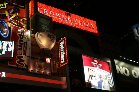 After dinner Glenn drove us to our hotel which is really in the middle of Manhattan! The location is better then we expected. At the check-in we where already surprised by the friendliness and got directly a FourSquare Action coupon for additional points for our stay, free entrance to the fitness area and free wireless internet ($ 9,95 for 4 hours). This because I’m a Priority Club Gold Member! The hotel room looks amazing and is on the 42nd floor! It’s not a Time Square view and it was to dark to see what our view is.