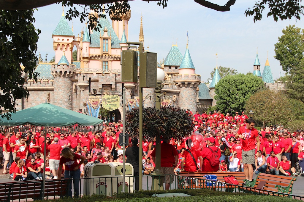 As we arrived at the parking garage of the Resort it was way more busy as the last 2 days but after a short while we arrived at our parking space and went to the parks with the tram. As soon as we arrived at Downtown Disney we noticed that a lot of people were wearing red t-shirts today. Reason for this…… Today was Gay Day at Disneyland Resort!!!