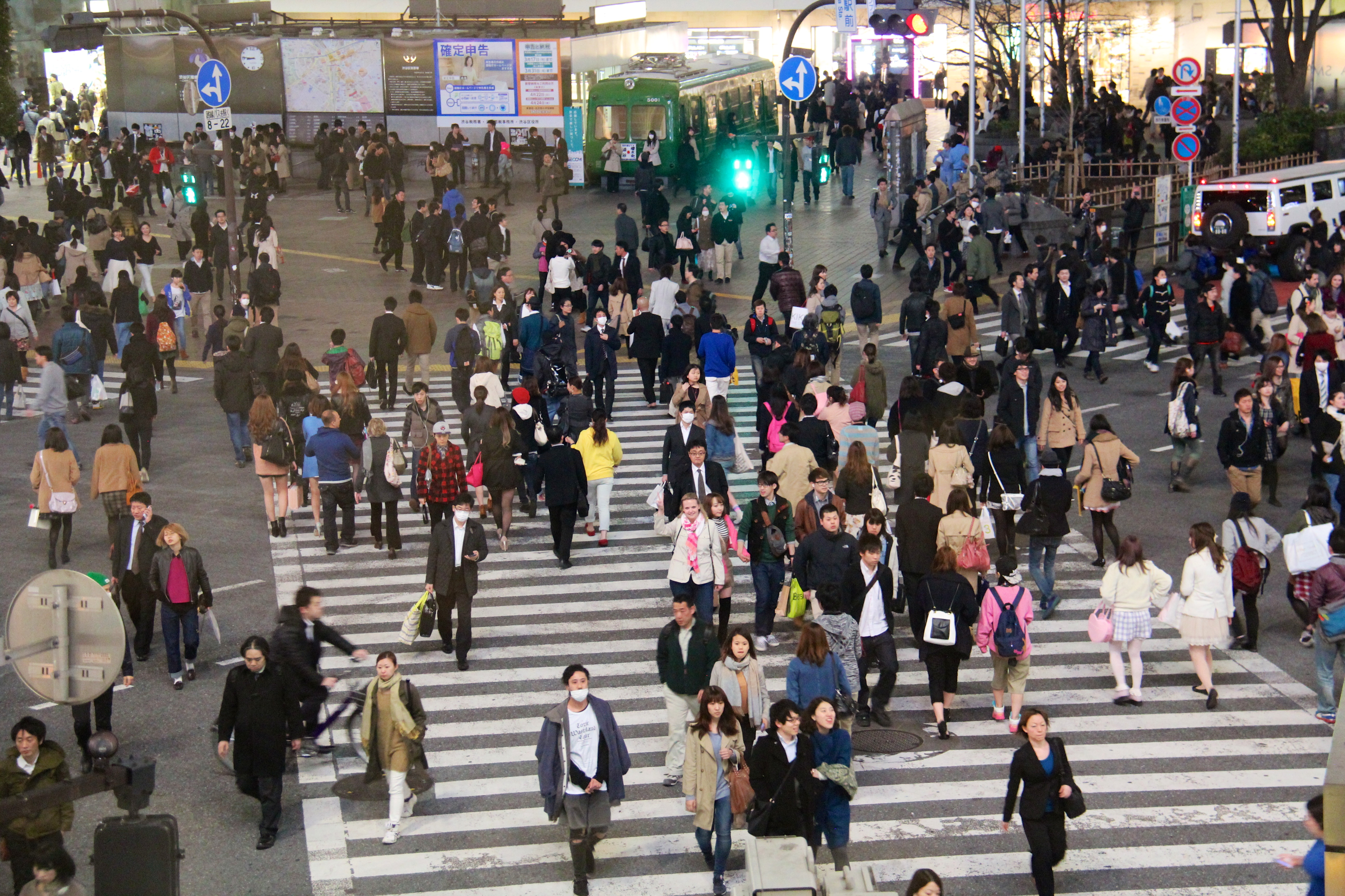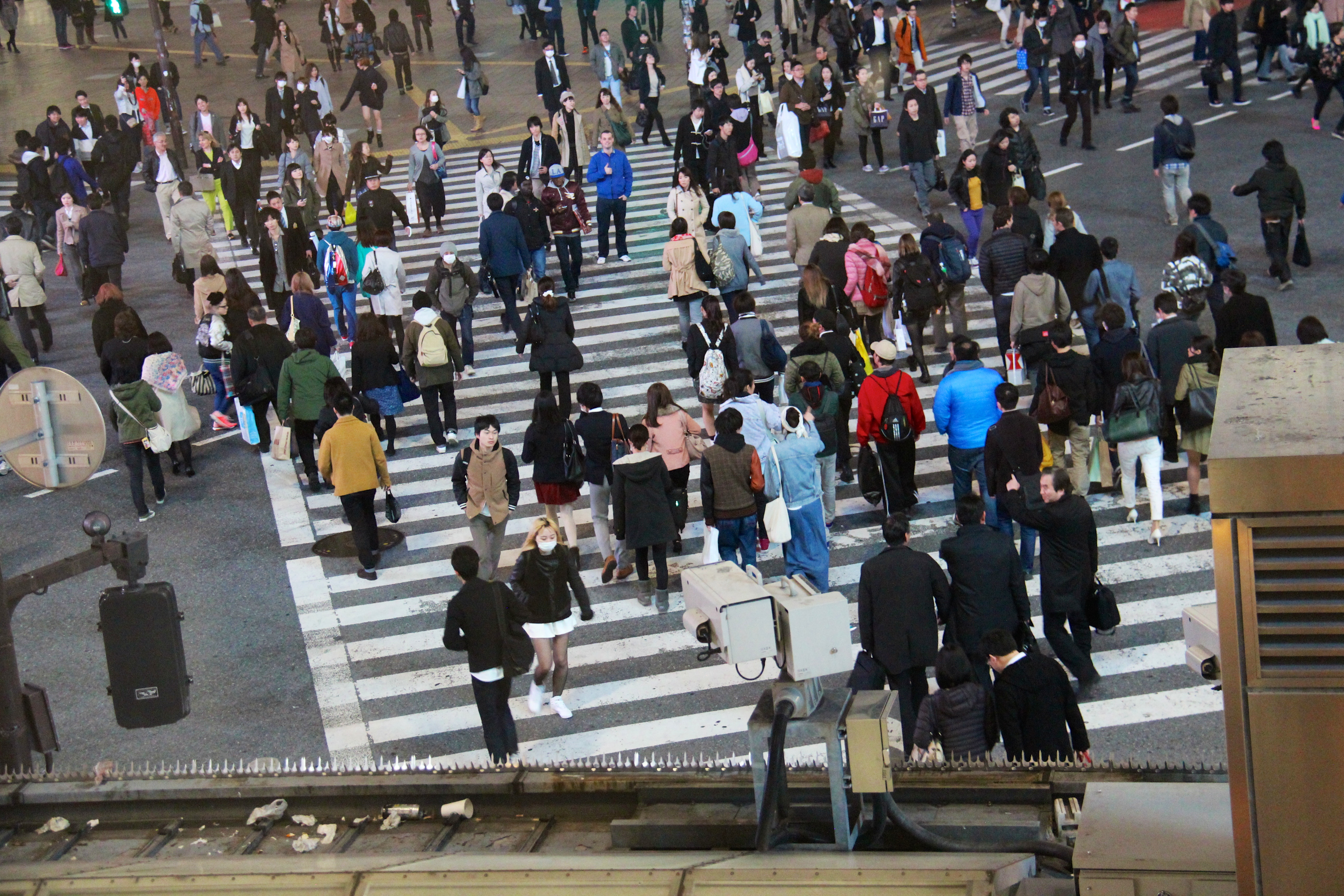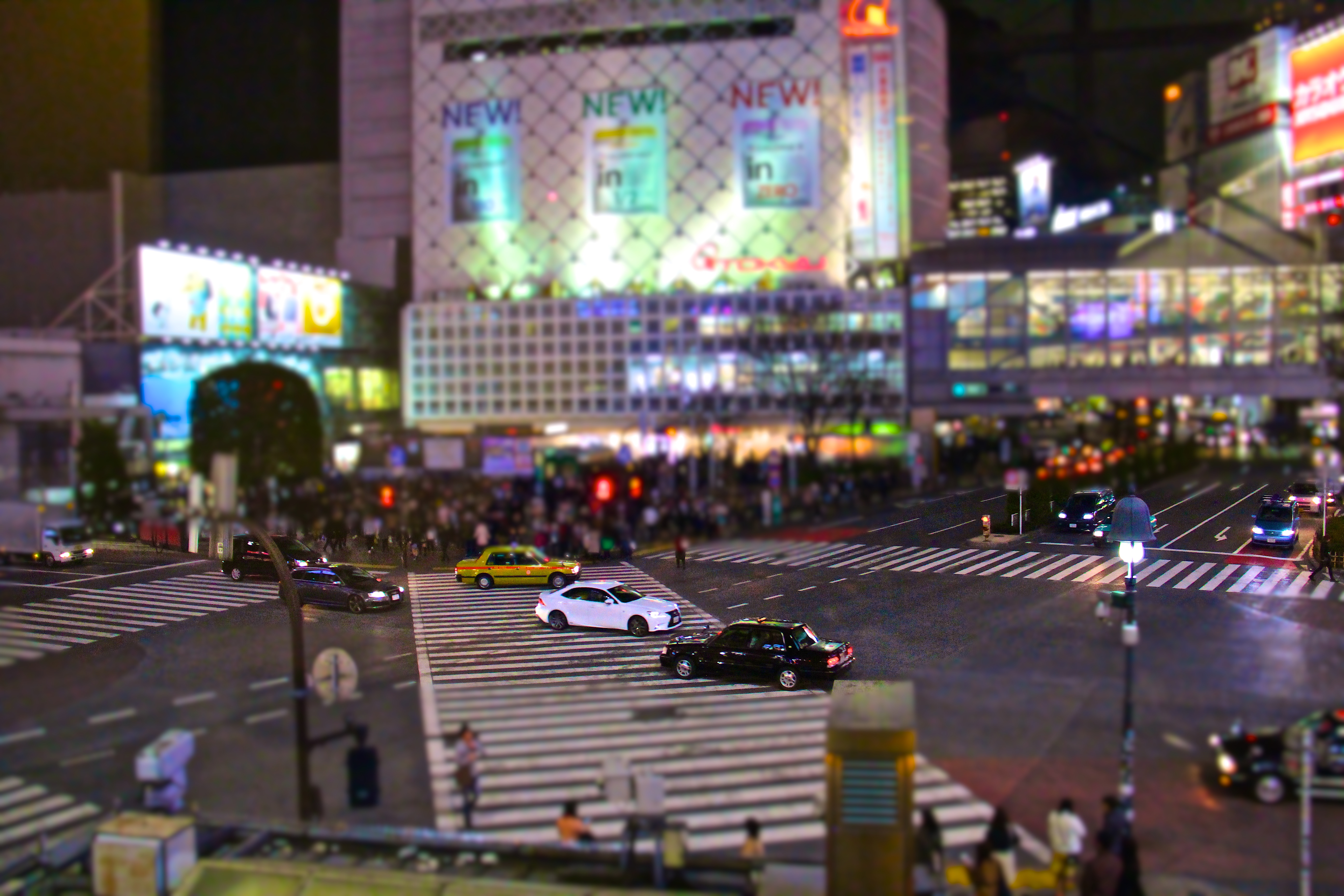 After we dropped of our luggage we left the room to take some pictures from Shibuya by night. Unfortunately Sander forgot the filter in the room but we still have some great pictures from the Shibuya Scramble Crossing. At this crossing all traffic lights for vehicles turn red at the same time and at that moment the pedestrian lights turn green. This is really interesting to see, the best location to watch this crossing from is the Starbucks which has a seating area on the 2nd floor. We took some picture from each other while crossing the street.