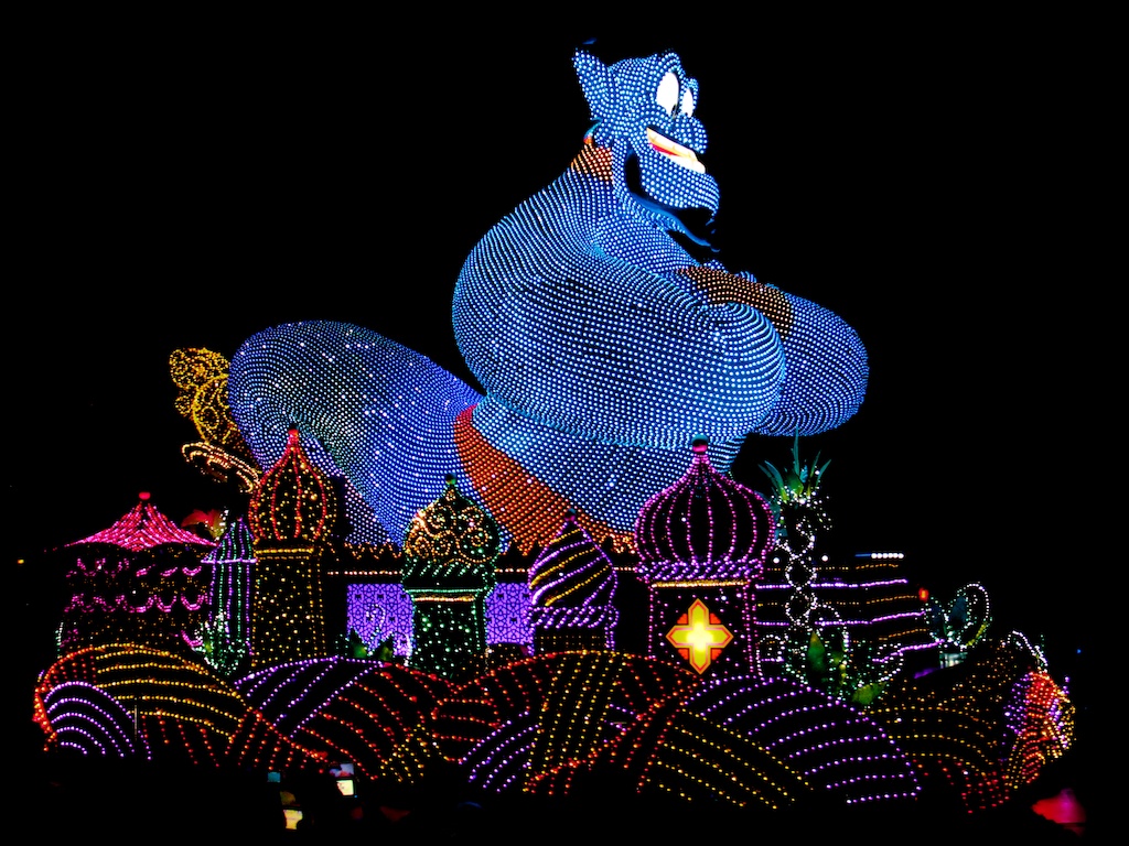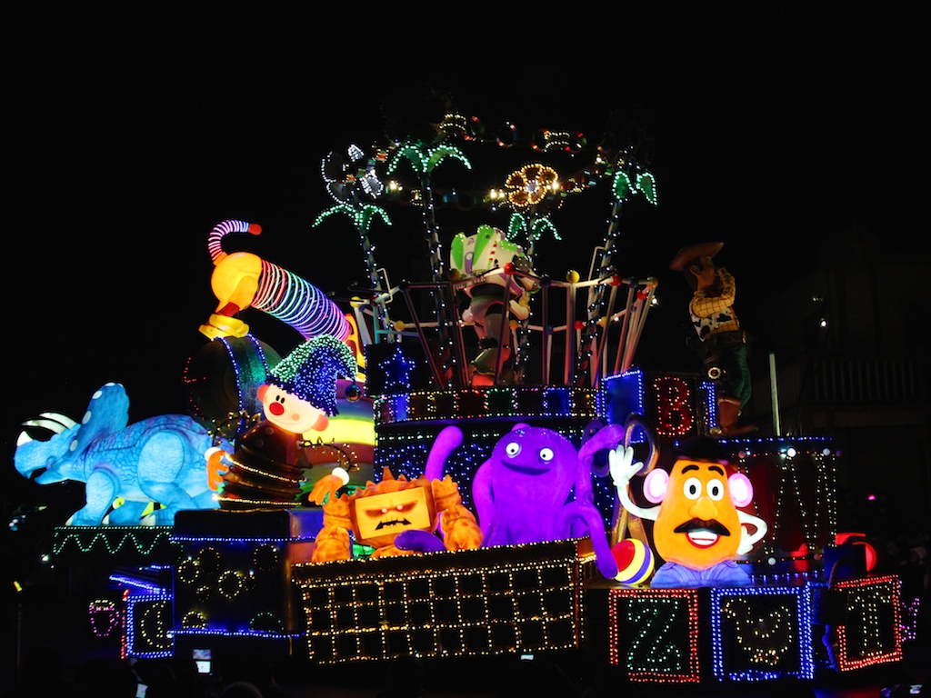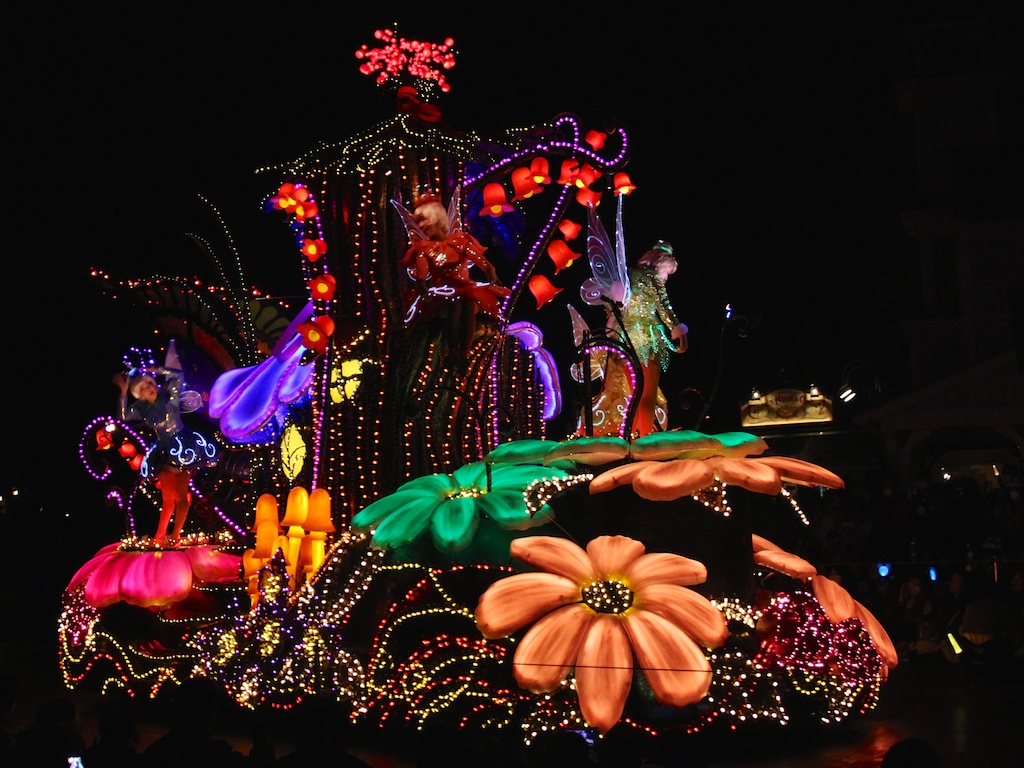 We entered the park and soon I fond another popcorn cart supplying Soy Sauce Butter Popcorn, this as also delicious. While I ordered and looked for a nice spot to watch the Tokyo Disneyland Electrical Parade Dreamlight Danielle watched the Oh Minnie, Oh Minnie! show. And at 19:30 sharp the parade started with even more floats as on monday. We both love this lengthy parade.