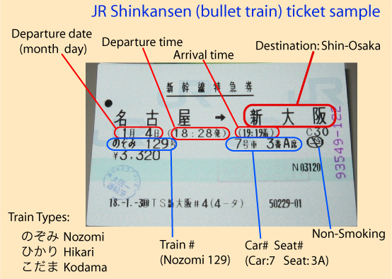 For this trip we’ve got 5 train tickets and they are in Japanese! Which means that if we are lucky we do understand our tickets, but we’ve found an easy explanation on the internet.