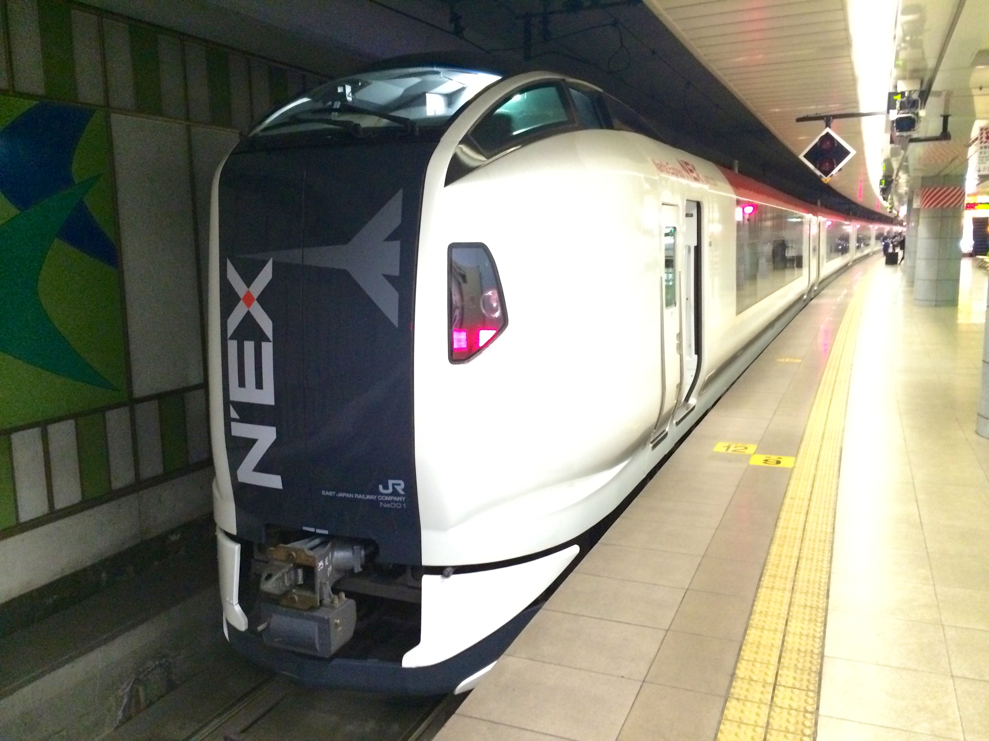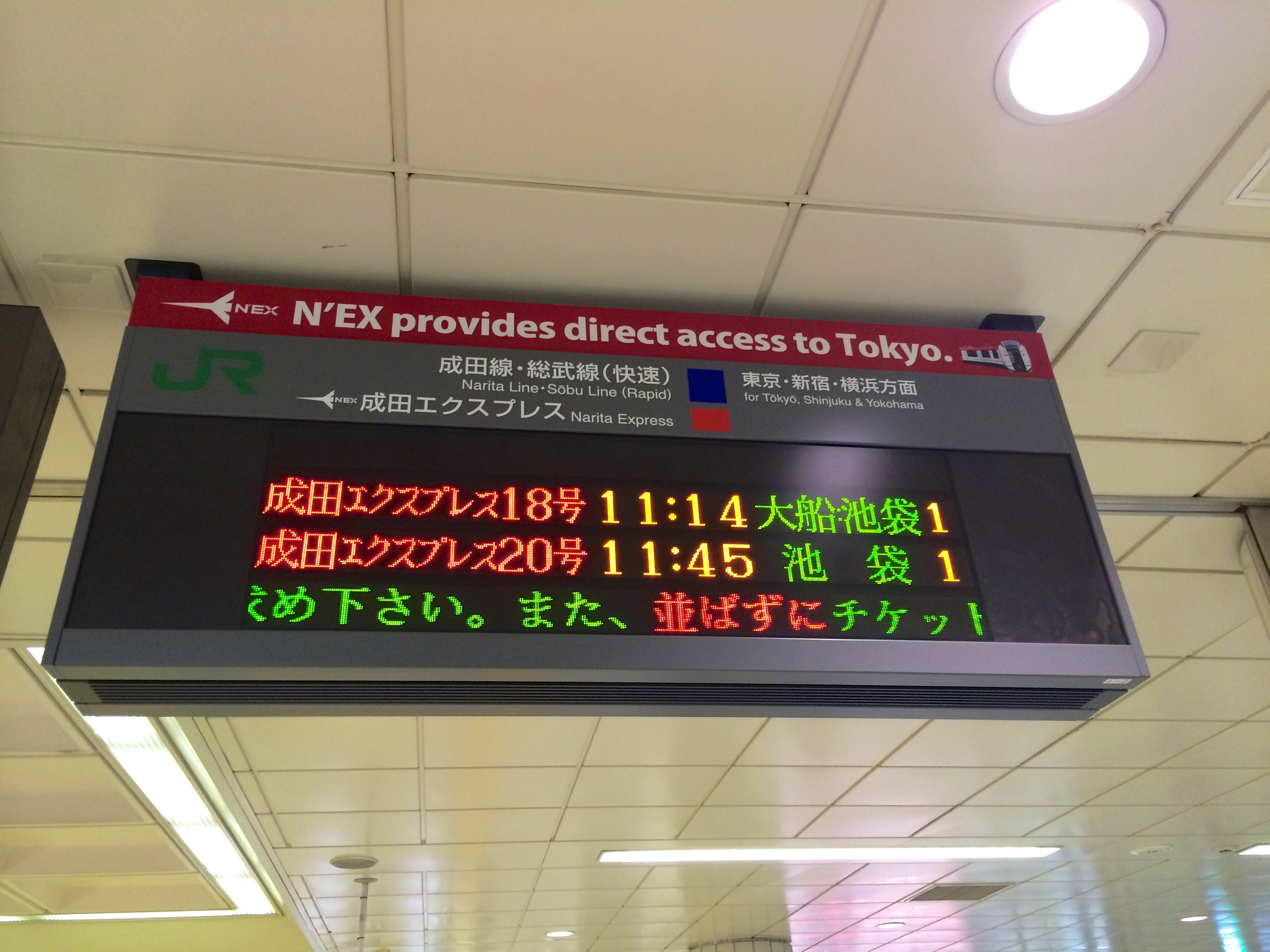 After we came to the border control we walked towards the JR East Travel Service Center to get a special combination for a round-trip with the Narita Airport Express (NEX) including a Suica prepaid card. The NEX is a train line which brings people from the Airpot directly into Tokyo and some surrounding areas and the Suica card can be charged at every station and makes it possible to pay contact free. But before we came to the Service Center we needed to catch a couple of escalators and this was actually a quite funny experience since after a couple of moments a line was behind us since people where lining behind us because we were both standing on the wrong side of the escalator. In Japan the people stay on the left side and walk on the right side which they also do whiteout questioning it.