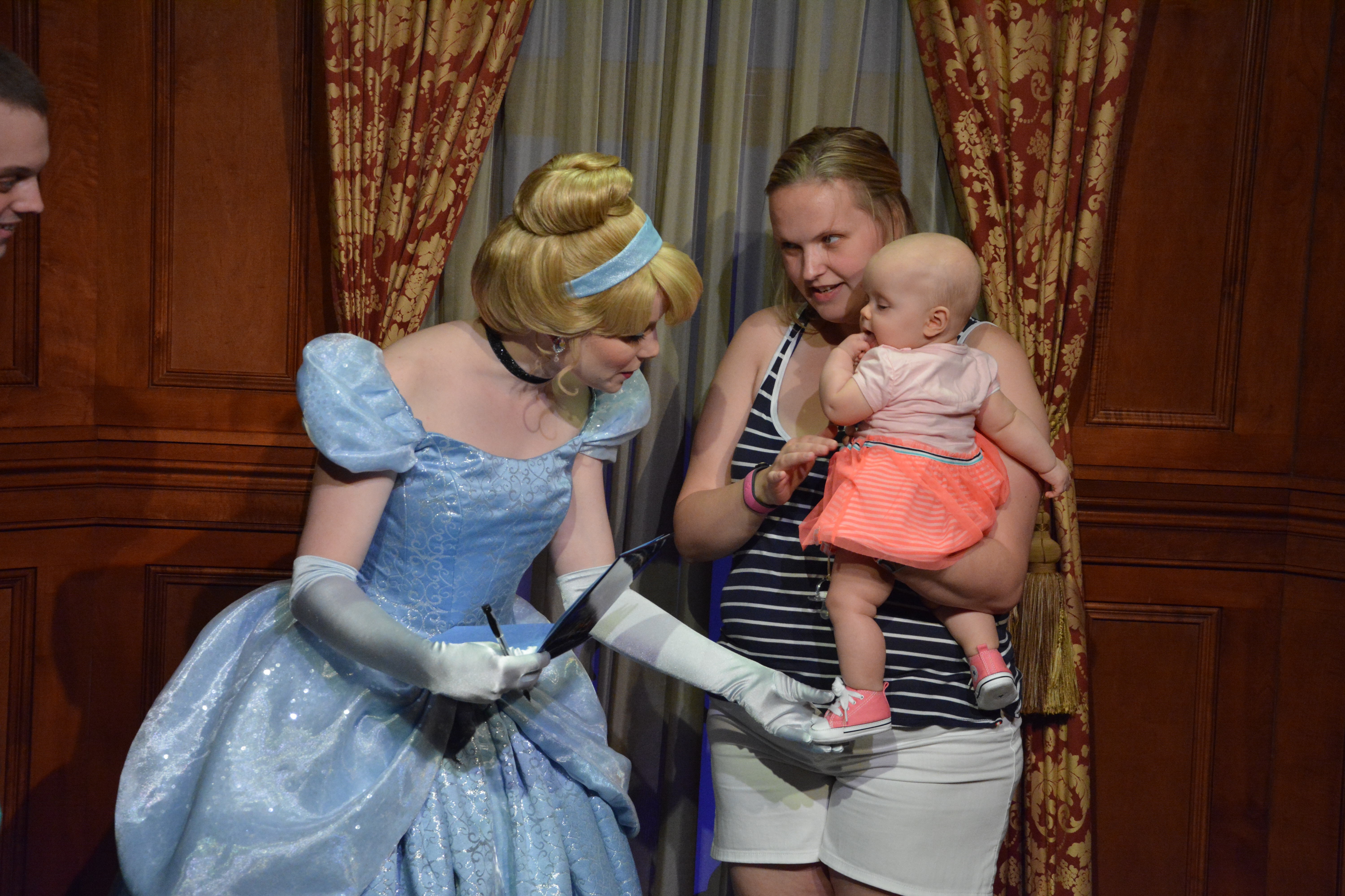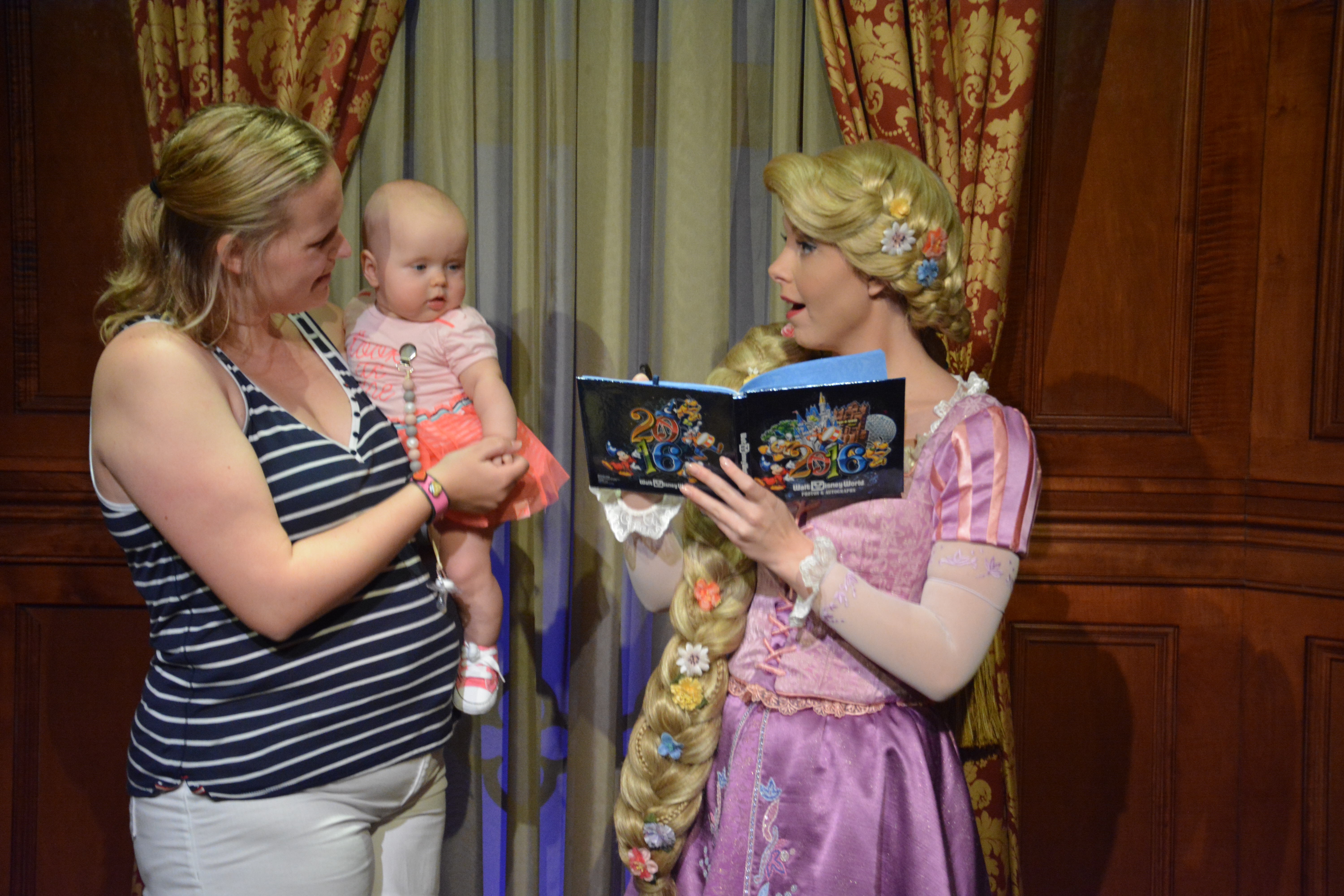 When we entered the room the princesses directly recognized each other and start talking about their beautiful blonde hair, the shoes and their dresses. Rapunzel explained that Emily’s hair will soon be as long as hers (I certainly hope not, have mercy to the shower drain), Cinderella loved Emily’s dancing shoes and asked her to come back to dance when she can walk and Emily was obsessed by Cinderella’s dress.