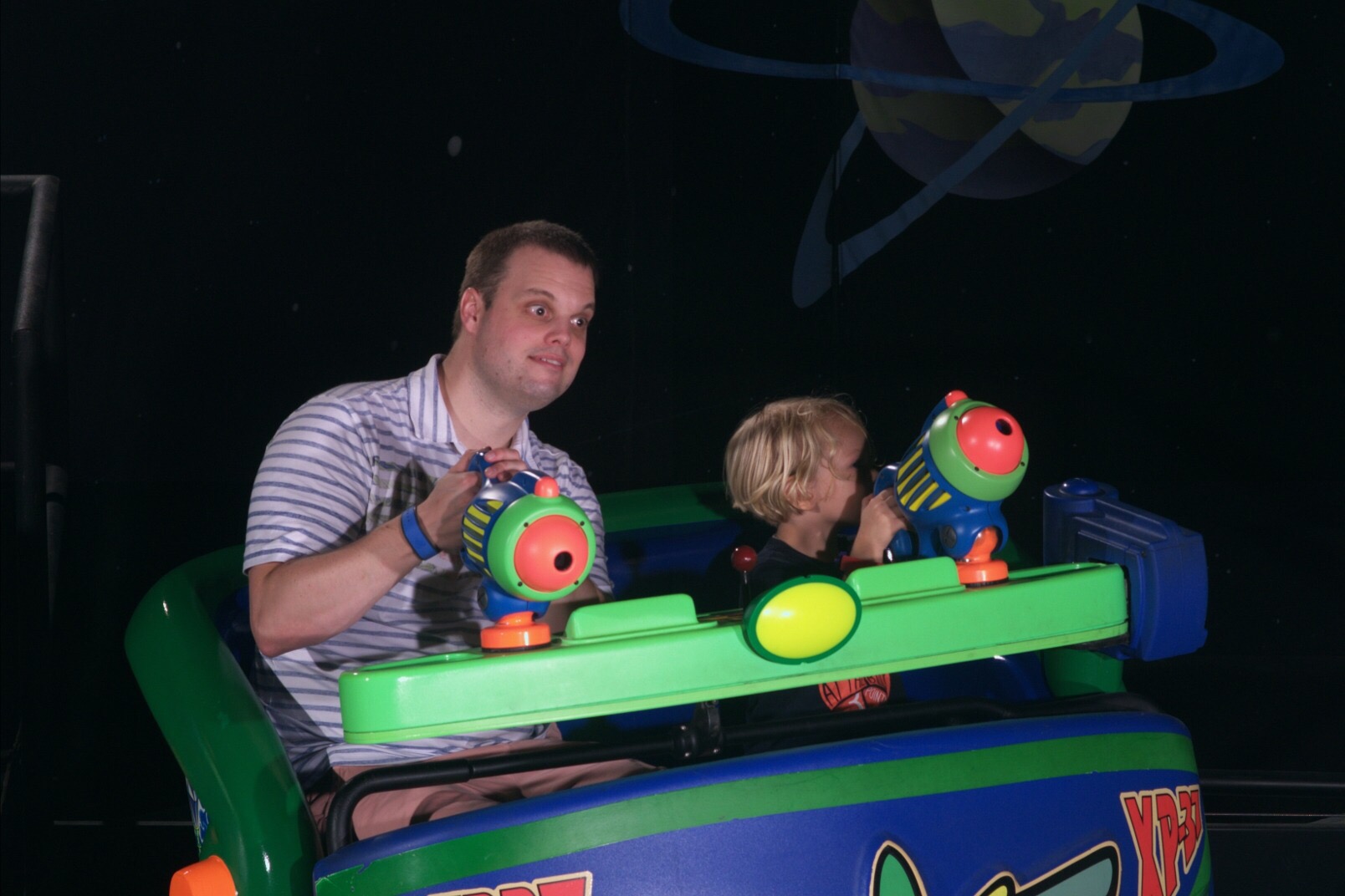 Emily fell a sleep on her mama’s lap during the first sequence and she still slept while the show was over! Mama stayed with the little princess while the rest of the group helped Buzz Lightyear defeating Captain Zurg! Ãusra saved us with a tremendous score of 400’000 points!